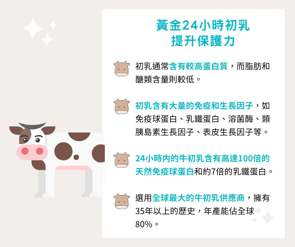 Fibersol®-2 玉米來源可溶性纖維/難消化性麥芽糊精、Synergy-1®專利菊糖、APS 30% IgG初乳粉、麥芽糊精、沙赫尼專利製程乳酸菌(DDS-1 嗜酸性乳酸桿菌L. acidophilus)、雙歧乳桿菌(比菲德氏菌)、植物乳桿菌、乳雙歧桿菌、短雙歧桿菌、乾酪乳桿菌、副乾酪乳酸桿菌、發酵乳桿菌、鼠李糖乳桿菌、嗜熱鏈球菌、凝乳芽孢桿菌、嗜酸性乳桿菌、長雙歧桿菌(龍根菌)、德氏乳桿菌乳酸亞種、羅伊氏乳桿菌、瑞士乳桿菌、微晶纖維素