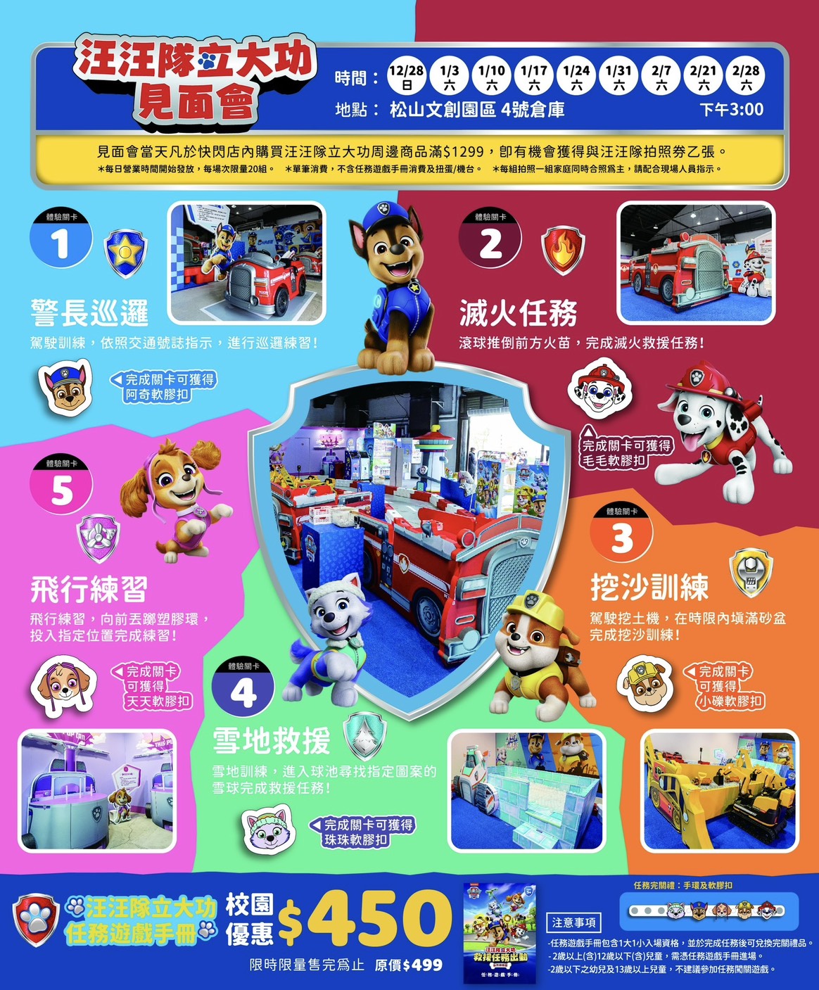 汪汪隊見面會時間:12/28、1/3、1/10、1/17,1/24、1/31、2/7、2/21、2/28 下午3:00
